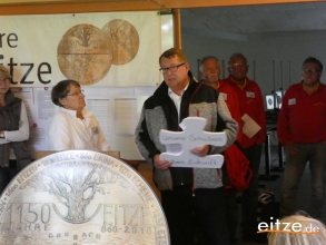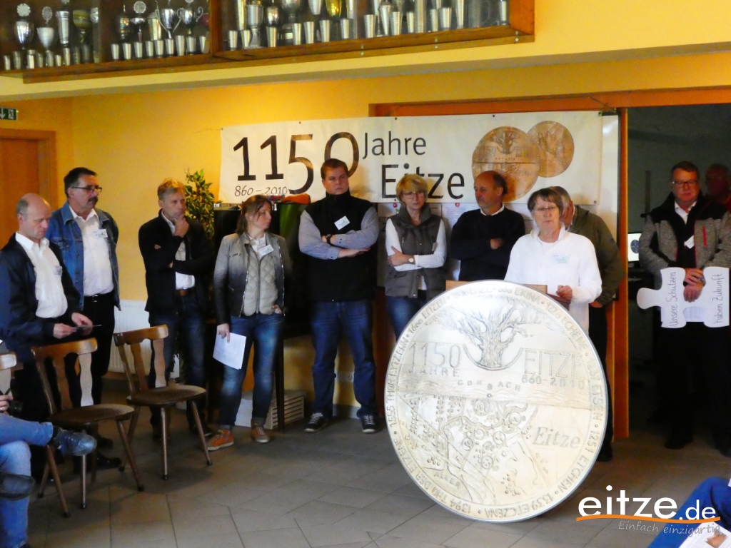 Im Gebäude der Eitzer Schützen erzählte Sie über die Geschichte der Ortschaft und stellte das Leitbild der Ortschaft vor. Anschließend übergab Sie das Wort an den 1. Vorsitzenden des Eitzer Schützenvereins, Gerd Blome, der den Verein und das Schützenhaus vorstellte, welches in Eigenarbeit der Eitzer Schützen im Jahr 2008 errichtet wurde. Nach seinem Vortrag überreichte Blome der Kommission ein Puzzleteil - das sich am Ende der 90 Minuten mit den anderen noch kommenden Puzzleteilen zu einem Gesamtbild zusammensetzt.