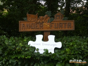 Achim Schäfers stand an der nächsten Station bereit. Am Holzschild "In der Furth" berichtete er in Kurzform von den 13 Holzschildern im Dorf, sowie von der Ortschronik, dem Jubiläumsbuch und dem Dokumentarfilm aus dem Jahr 2014 - denn auch "Unsere Erinnerungen haben Zukunft". Ein passendes Puzzleteil wurde auch hier auf dem Wagen übergeben.