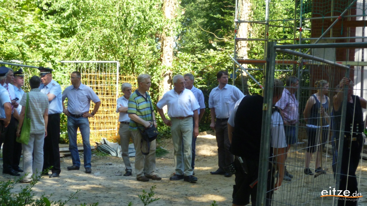 Gundlack dankte dem Stadtrat und der Verwaltung dafür, mit dem Beschluss „grünes Licht“ für den Neubau gegeben und die notwendigen finanziellen Mittel zur Verfügung gestellt zu haben. Ein Dank galt auch dem Architekturbüro Hartmann, das die nicht leichte Aufgabe hervorragend gemeistert habe. Sportverein und Heimatverein sowie weitere Eitzer Bürger hätten tatkräftig bei der erforderlichen Verlegung des Spielplatzes mitgeholfen und somit die pünktliche Grundsteinlegung im April diesen Jahres ermöglicht.