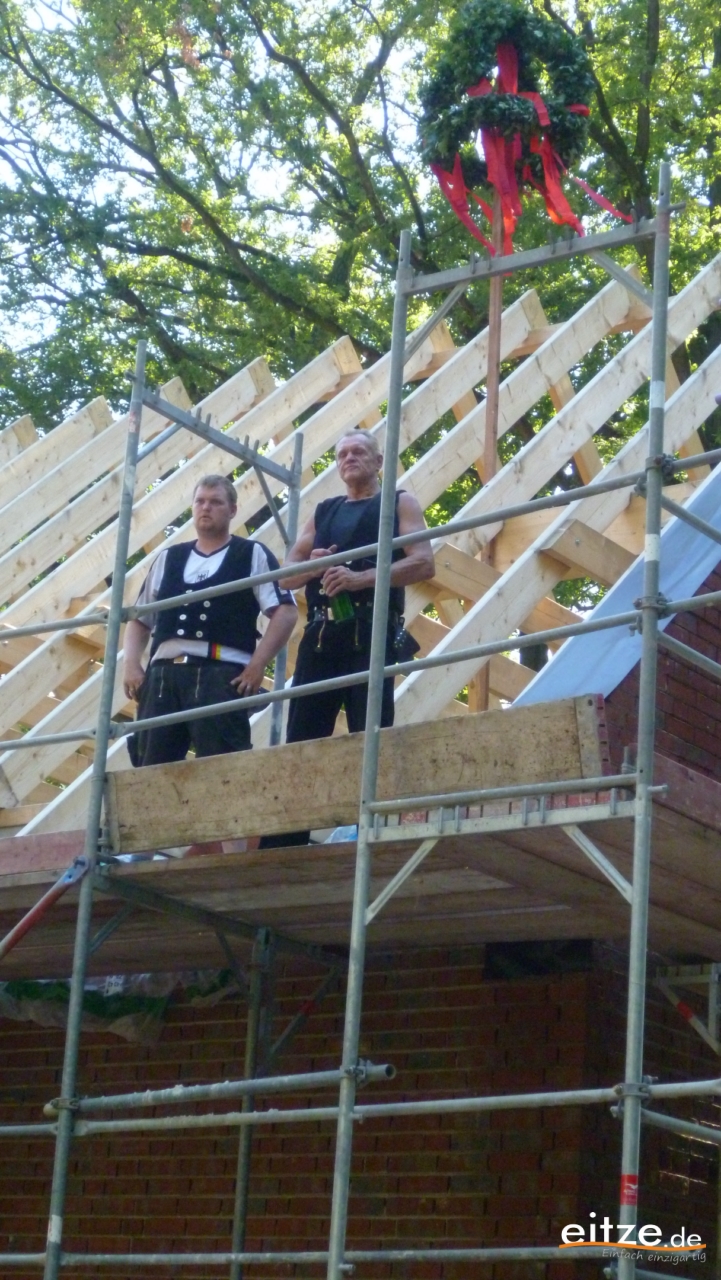 Verden-Eitze - Das Ende des längeren Provisoriums für die Ortsfeuerwehr Eitze ist in Sicht, denn am Freitag wurde das Richtfest für den Neubau des Feuerwehrhauses gefeiert.