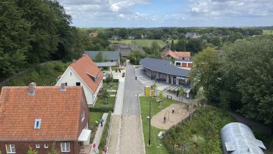 Gestärkt mit traditionellen Gerichten wie Matjes mit Bratkartoffeln ging es dann zur „Königberger Straße“. In diesem bundesweit einmaligen Projekt wird das Alltagsleben im ländlichen Raum in den ersten Nachkriegsjahrzehnten erlebbar gemacht. Hier sind fünf Häuser aus den 1950er bis 1970er Jahre wieder errichtet worden – einschließlich zeittypischer (Nutz-) Gärten, Spielplatz, Straßenlaternen, Litfaßsäule und Telefonzelle. Die Ausstellungen in den Gebäuden zeigen Wohnsituationen von Familien und übliche Arbeitsplätze dieser Zeit.