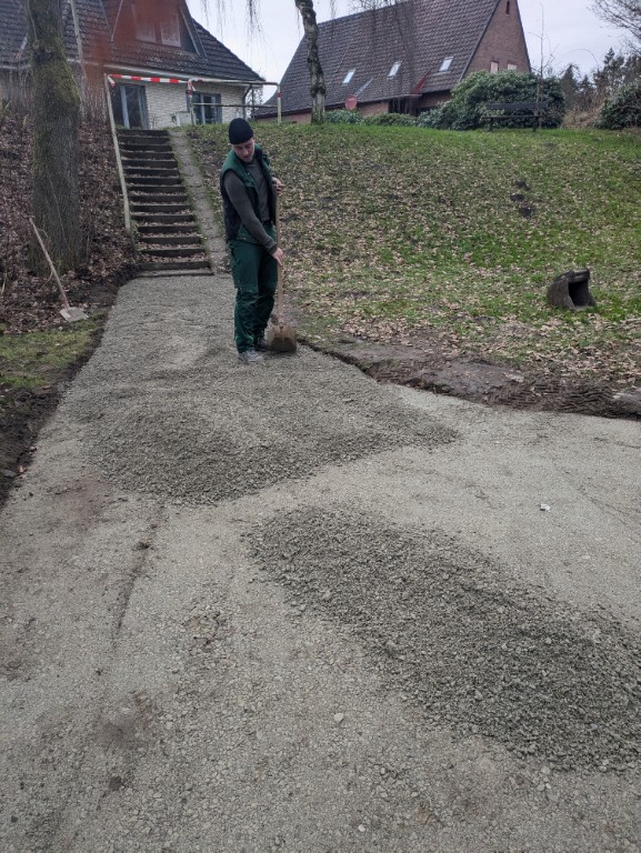 In der Woche vor dem 4. Advent ist ein großer Wunsch vieler Eitzerinnen und Eitzer in Erfüllung gegangen: der Weg zur Furt von der Weitzmühlener Straße bis zur Gohbachbrücke ist endlich saniert worden. Im Auftrag der Stadt hat die Firma Offer den Weg ausgekoffert, eine Unterschicht eingebracht und das Ganze mit wassergebundener Decke versehen.