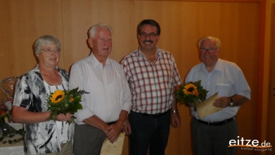 Der erste Vorsitzende Rolf Panning nahm die Ehrung der zwei noch lebenden Mitglieder der „ersten Stunde“ vor. Heinz Thies und Walter Thies wurden für ihre langjährige Vereinszugehörigkeit und ihr Wirken für den Eitzer Sportverein mit einer Urkunde, einem Präsentkorb und einem Fotoalbum vom Eitzer Sportverein unter viel Beifall der Anwesenden Vereinsmitglieder ausgezeichnet. Den Ehefrauen wurde ein Blumenstrauß überreicht.