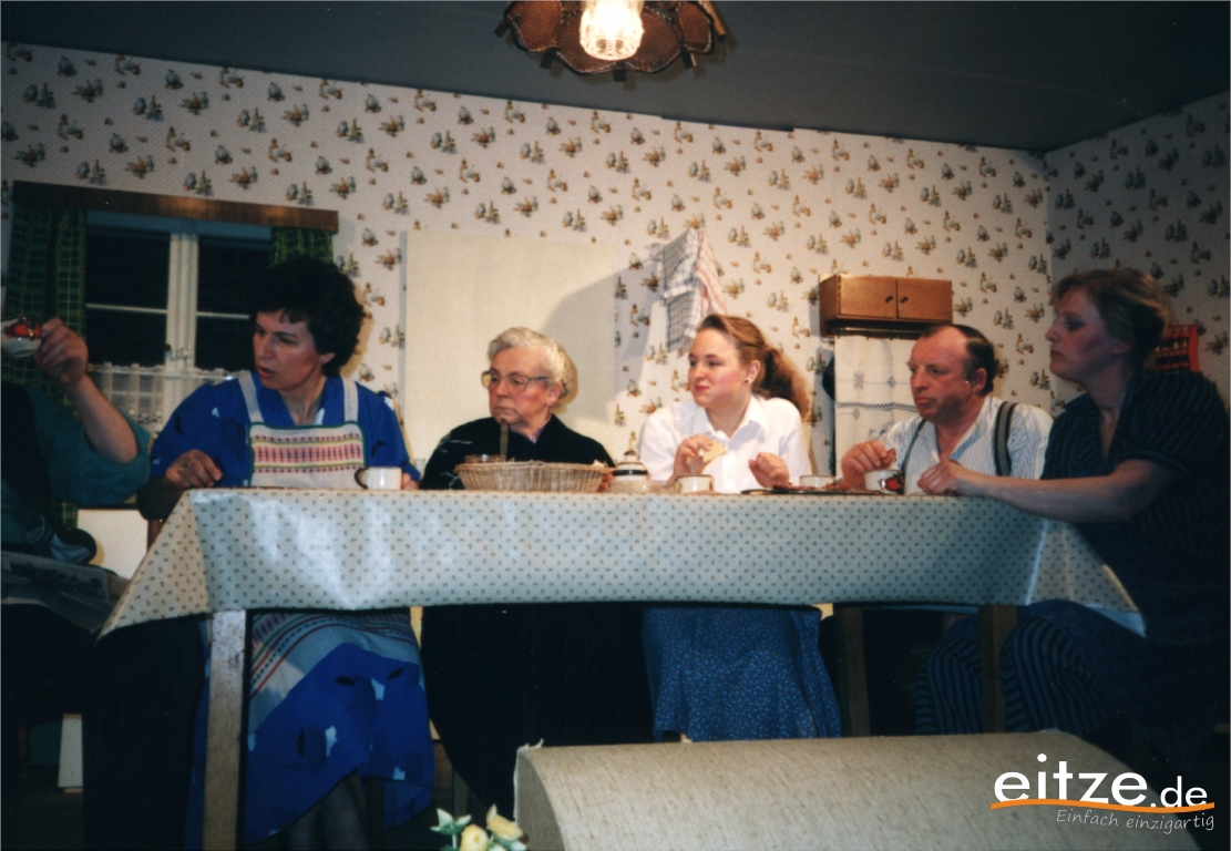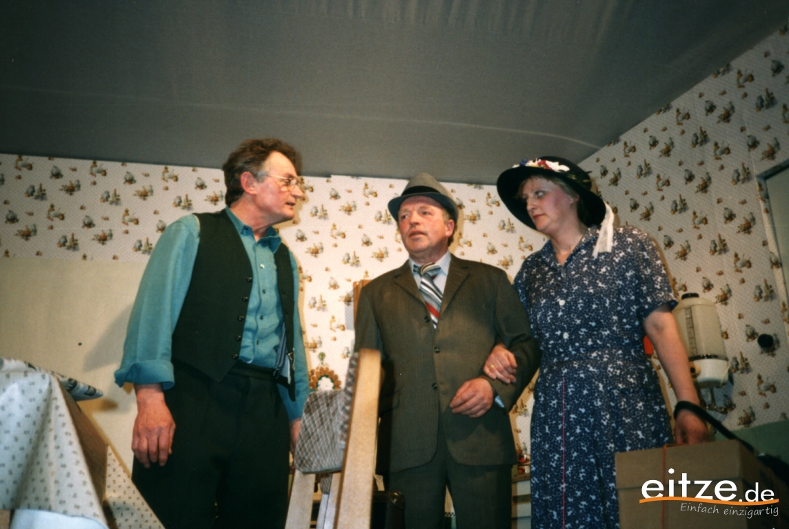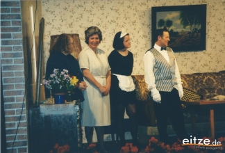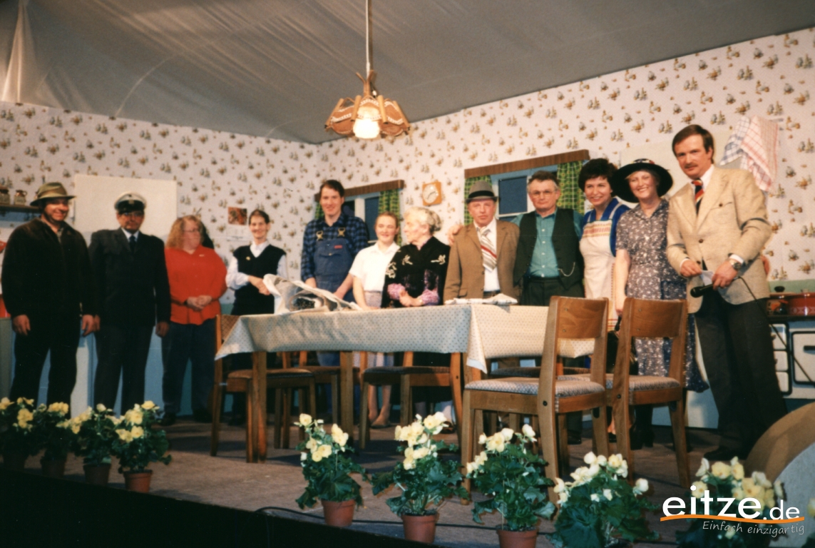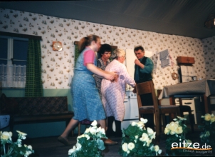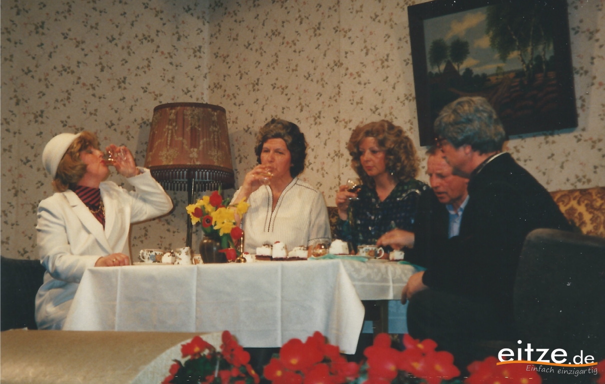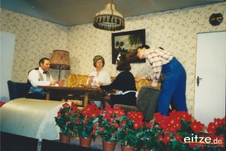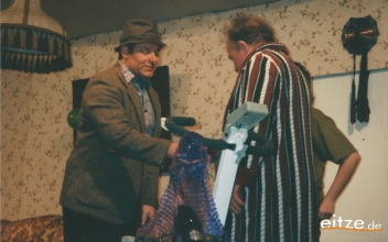 Schon vor 25 Jahren war das Stück ein ausgesprochener Theatererfolg und manche Rolle werden die älteren unter unseren Besuchern mit alten Bekannten wie vor 25 Jahren besetzt finden, wie z.B. Gerda Bohnet als schlagfertige Oma oder Harald Brockmann als Dorfpolizist. Auch Irmgard Dirks geb. Panning spielte damals mit, wenn auch in einer anderen Rolle.