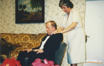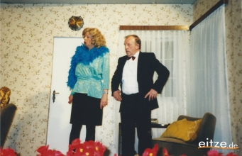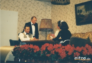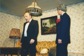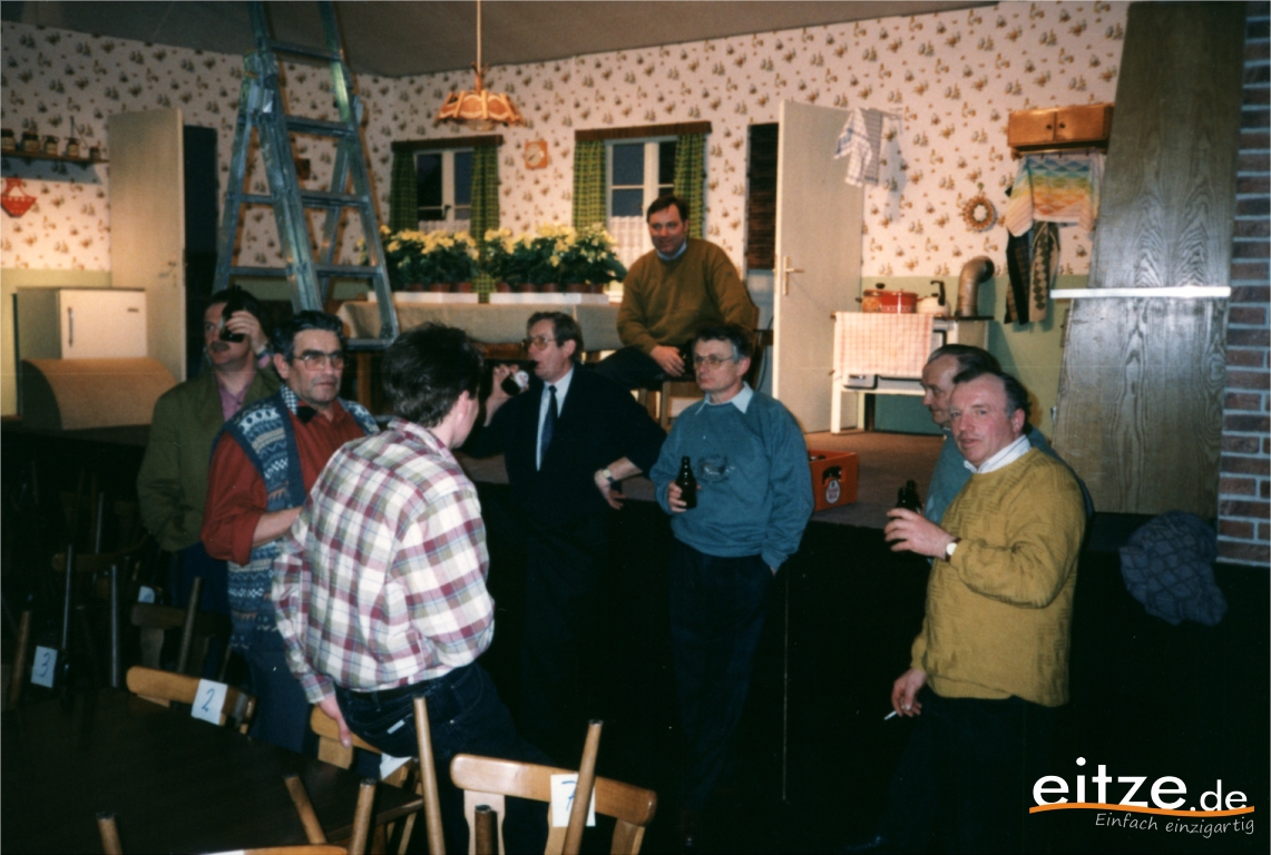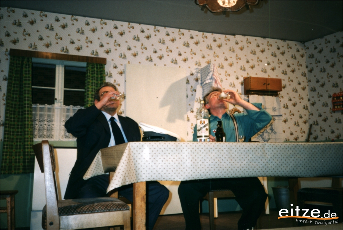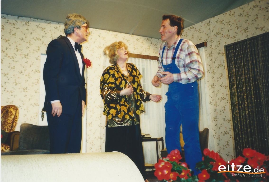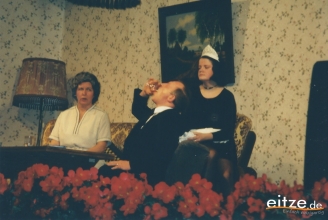 Schon vor 25 Jahren war das Stück ein ausgesprochener Theatererfolg und manche Rolle werden die älteren unter unseren Besuchern mit alten Bekannten wie vor 25 Jahren besetzt finden, wie z.B. Gerda Bohnet als schlagfertige Oma oder Harald Brockmann als Dorfpolizist. Auch Irmgard Dirks geb. Panning spielte damals mit, wenn auch in einer anderen Rolle.