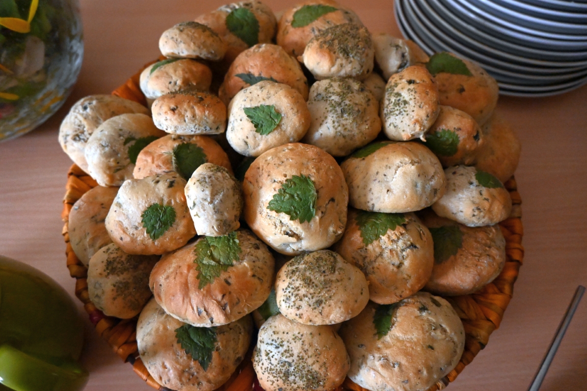 Zum Abschluss konnte man das, was man auf dem Spaziergang über die Verwendungsmöglichkeiten der Wildkräuter in der Küche erfahren hatte, praktisch ausprobieren: im Dorfgemeinschaftshaus gab es ein Wild-Kräuterbüffett mit Giersch-Limonade, grünen Wildkräuter-Pfannkuchen, Wildkräuter-Brötchen, Sommerblumen-Butter, Wiesen-Tzaziki, Wildkräuter-Salt und Mädesüß-Creme. Die Eitzerinnen waren begeistert davon, was man mit Wildkräutern so alles zubereiten kann und diese werden wohl Einzug in die ein oder andere Eitzer Küche halten, denn Susanne Zweibrück verteilte zum Schluss noch an alle Teilnehmerinnen ein kleines Heftchen mit Informationen zu den Wildkräutern und den Rezepten zum Nachkochen.