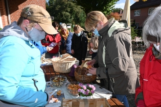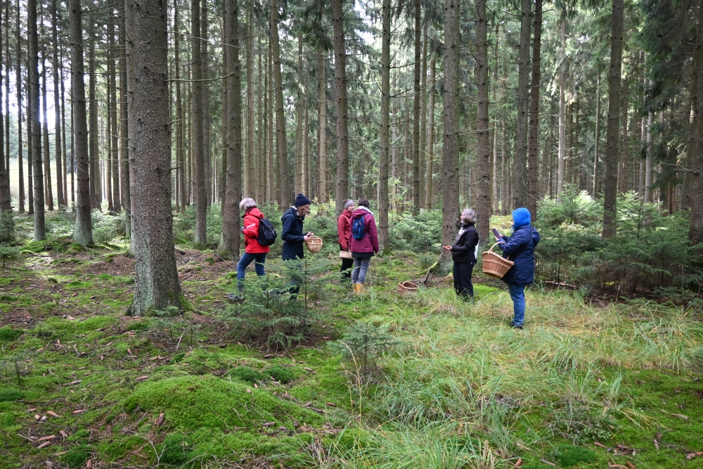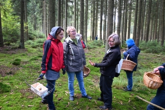 Am Samstag, den 10.10. hieß es für 18 Eitzer Frauen „auf in die Pilze“. Der diesjährige Frauenausflug des Heimatvereins führte nämlich in die ausgedehnten Waldgebiete der Lüneburger Heide – eine ideale Pilzregion. Unter der sachkundigen Anleitung der zertifizierten Natur- und Landschaftsführerin Gabriele Link durchstreiften sie den Wald in der Nähe von Eversen auf der Suche nach Pilzen. Viele Pilze wurden betrachtet und untersucht, aber nur die essbaren Pilze wie Steinpilze, Maronen-Röhrlinge, violette Lacktrichterlinge, Fichten-Reizker und Krause Glucken landeten in den Sammelkörben. Zum Schluss führte die Wanderung zum Landhotel Helms, wo die Pilze von den Sammlerinnen küchenfertig geputzt und anschließend vom Küchenchef Alexander Helms zum Mittagessen zubereitet wurden. Dieser Ausflug hat allen viel Spaß gemacht.