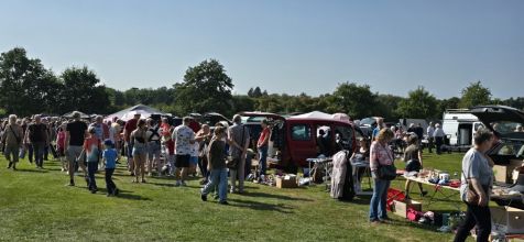 Ab 12.30 Uhr wurden bei bestem Sommerwetter die Verkaufstische aufgebaut. Optimal für die Verkäufer war die Möglichkeit, dass das Auto gleich beim Stand stehen bleiben konnte. Es dauerte dann auch nicht lange, bis sich die ersten Käufer zeigten. Der hintere Teil des Sportplatzes, der als Parkplatz für die Besucher*innen genutzt wurde, füllte sich schnell, denn viele waren gekommen, um auf den Verkaufstischen und Ständern nach Interessantem, Schnäppchen und lang Gesuchtem Ausschau zu halten. Ständig umlagert war auch der Verkaufsstand des Heimatvereins für Kaffee und Kuchen, kalte Getränke und herzhafte Snacks.