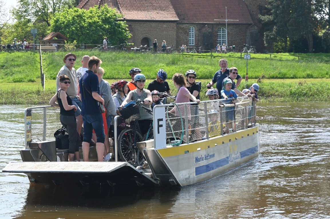 Dieses Jahr wird die Aller zweimal gequert - zunächst über den Brückenschlag an der Bahnbrücke und dann von Westen aus mit der Solarfähre nach Otersen. Dazwischen werden die Radlerinnen und Radler auf halber Strecke zum Mittagessen im Mehrgenerationenhaus in Westen erwartet. Den Abschluss macht wie immer das gemeinsame Kaffeetrinken mit Butterkuchen im Dorfgemeinschaftshaus. Hier soll der Tag gemütlich ausklingen.