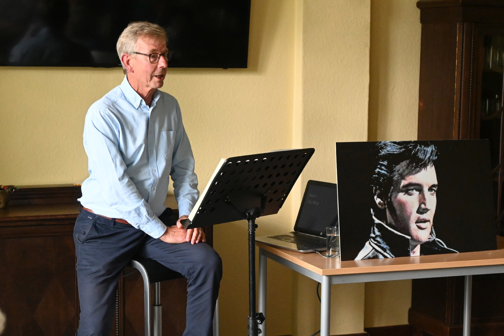 Zum ersten Mal seit über zwei Jahren hat sich der Senioren-Treff des Heimatvereins im Juni wieder im Dorfgemeinschaftshaus unter fast normalen Verhältnissen getroffen. Die Anwesenden haben dabei ein Highlight erlebt: Rolf Zepp war zu Besuch und hat aus dem Leben von Elvis Presley erzählt. Untermalt mit vielen Tondokumenten und Musikschnipseln hat dieser Vortrag bei vielen die Erinnerungen an die wilden 50er und 60er Jahre aufleben lassen.