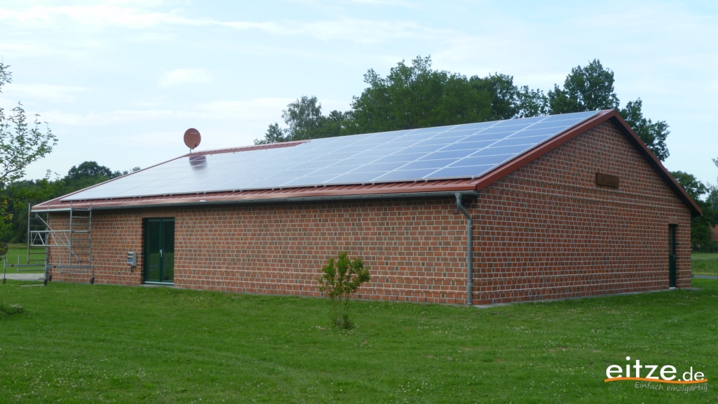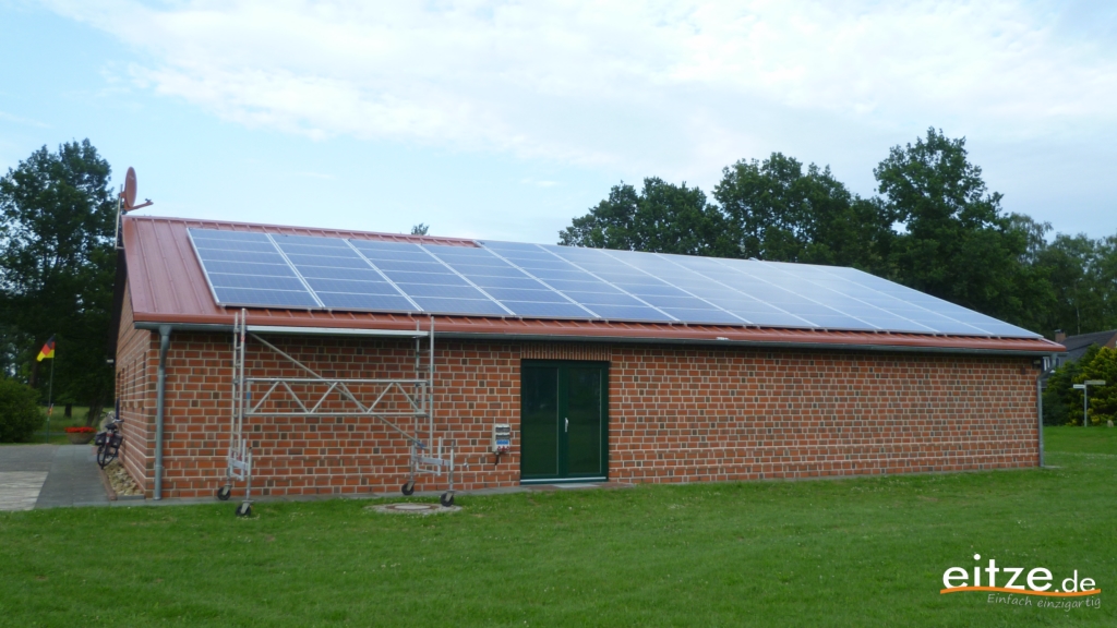 Auf dem Dach des Schützenhauses in Eitze wurde eine Fotovoltaikanlage (PV- Anlage) errichtet, um Strom zu erzeugen und gleichzeitig Klimaschutz zu betreiben.