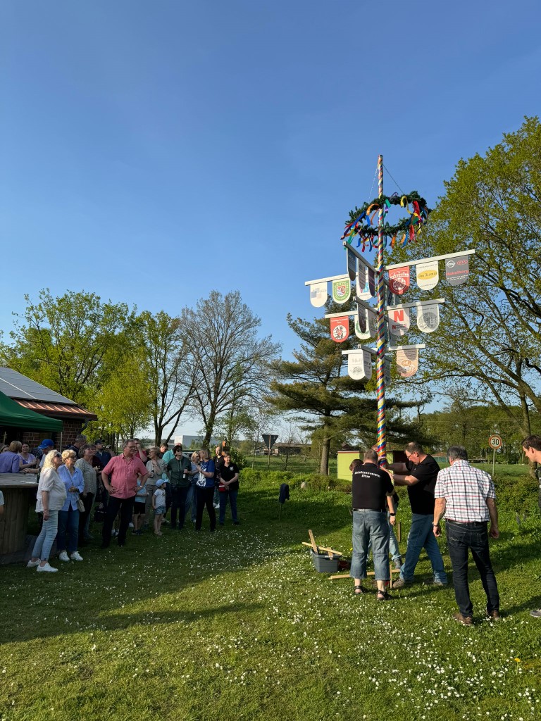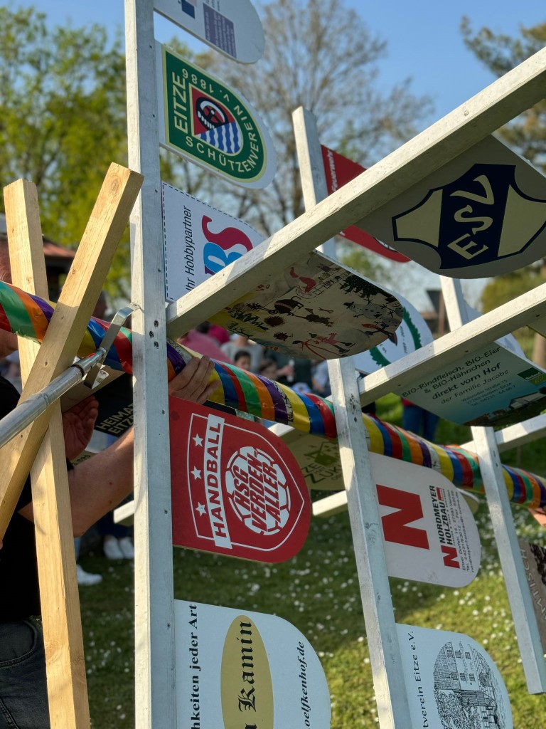 Zum 6. Mal wurde der Eitzer Maibaum am Hexenmoor aufgestellt. Der mit bunten Bändern und Schildern geschmückte Baum bleibt nun wieder bis Anfang Oktober stehen. Das aufstellen haben wieder viele Bewohner*innen und Gäste verfolgt. Der Schützenverein Eitze bot erneut Getränke und Würstchen vom Grill an, sowie zum ersten Mal frisches Popcorn.