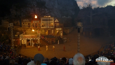 Am Samstag, den 13. August 2016 war die Heimatbühne zu Ihrem diesjährigen Ausflug aufgebrochen. Nachmittags um 14:30 Uhr trafen sich die Laienschauspieler, Helfer und Mitglieder der Heimatbühne am Dorfgemeinschaftshaus in Eitze. Mit dem Bus ging es dann nach Bad Segeberg zu den Karl-May-Festspielen auf dem Kalkberg. Hinter Hamburg wurde eine kurze Kaffeepause eingelegt. In Bad Segeberg angekommen folgte ein kleiner Fußmarsch in die Stadt. In einem Griechischen Restaurant wurden verschiedene Spezialitäten als Buffet angeboten.
